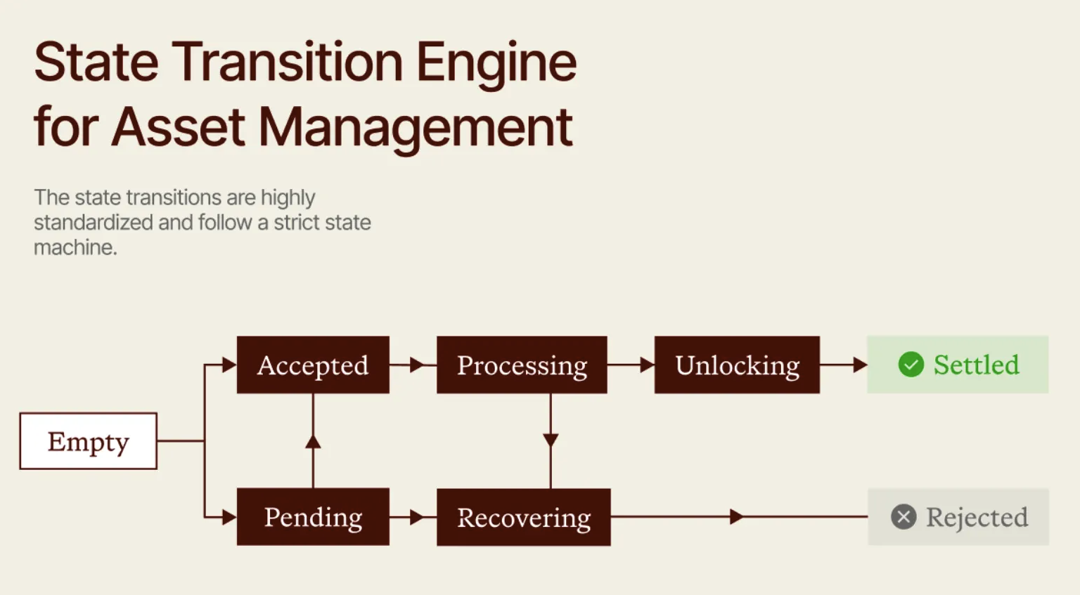 - PROCESSING: Assets/shares committed, vehicle is executing the operation.